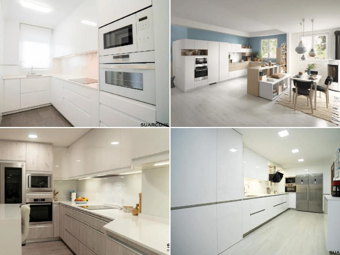 Nous avons déjà vu de nombreuses idées et propositions de cuisines au design en L. Cuisines, que nous trouvons toutes parmi les nouveautés de Schmidt, mais ce n’est pas la seule entreprise ou entreprise de design d’intérieur qui s’engage dans ce type de cuisine. La firme Suarco dispose également de plusieurs modèles de cuisines en L que nous trouvons vraiment intéressant. Des cuisines comme le modèle que nous voyons ci-dessous, qui se distingue par la tendance dont nous avons déjà parlé tout au long de l’article. le utilisation de la couleur blanche qui illumine également et permet à notre cuisine en forme de L de donner l’impression qu’elle avait beaucoup plus de profondeur.