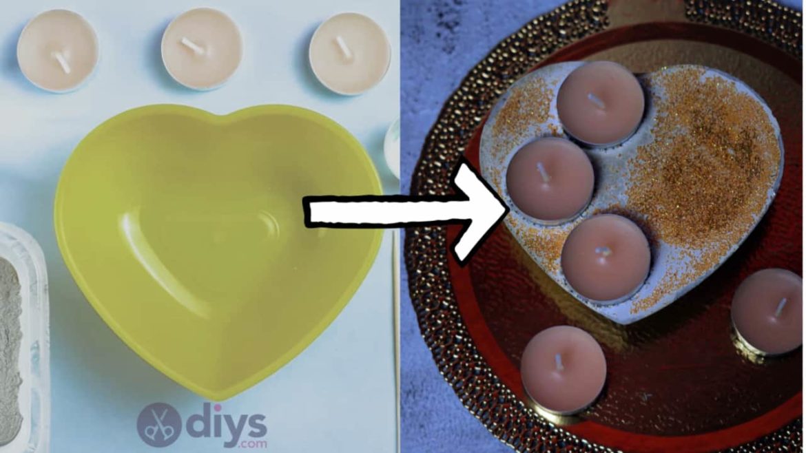 Si je suis honnête avec vous, il y a peu de choses que j'aime autant que j'adore l'artisanat, surtout si ce que je fais est dans la veine de la décoration intérieure. Cela étant dit, cependant, je vais aussi admettre que j'aime les bougies plus que n'importe quoi. Ils ont l'air bien, ils sentent bon et leur lueur chaude me fait me sentir calme et confortable, ajoutant magnifiquement à l'atmosphère, peu importe la pièce dans laquelle je les mets. Je suis sûr que vous pouvez imaginer à quel point je suis excité à tout moment Je trouve une nouvelle façon de combiner mon amour pour ces deux choses en un seul endroit! Ce genre de réflexion est ce qui m'a amené à utiliser mes compétences en béton bricolage bien-aimées pour me faire un nouveau bougeoir. J'ai trouvé un joli bol en plastique en forme de cœur dans le magasin à un dollar et j'ai immédiatement su qu'il ferait un excellent moule.