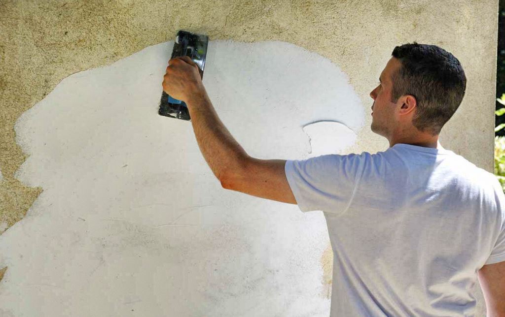 - Appliquez l’enduit sur votre mur en pierre .
