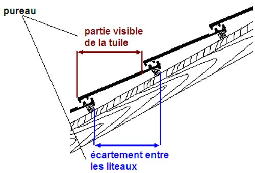 Comment mesurer le pureau d’une tuile ? Technique. Si vous ne connaissez pas le pureau d’un lot de récupération, prenez 12 tuiles au hasard. Posez-les à l’envers sur une surface plane, emboîtées et tirées, de façon à pouvoir mesurer la distance maximale de deux points correspondants, choisis sur la première et sur la onzième tuile (L).