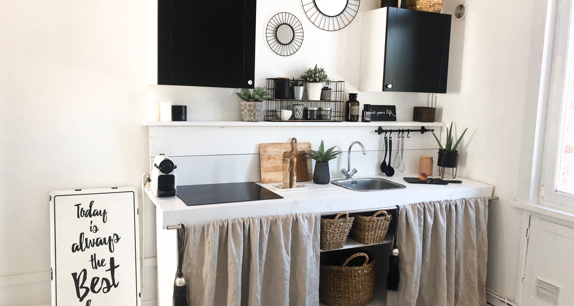 Note : il vous faudra un minimum de 1,50 à 1,80 m en largeur (prévoyez de 60 à 70 cm pour la largeur du plan de travail, et entre 90 cm et 1,2 m de passage).