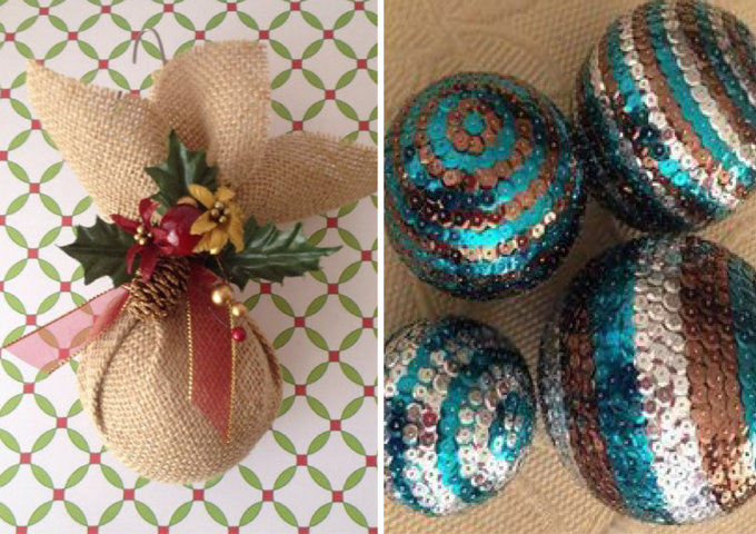 Comment décorer une boule de Noël en plastique ? C’est simple – remplissez la boule avec des paillettes et fermez-la. Ou encore, versez de la colle et saupoudrez l’intérieur de la boule avec des paillettes. À l’aide de la ficelle suspendez au sapin ou au plafond. Cette décoration est une idée originale pour créer une ambiance douce et festive de Noël.