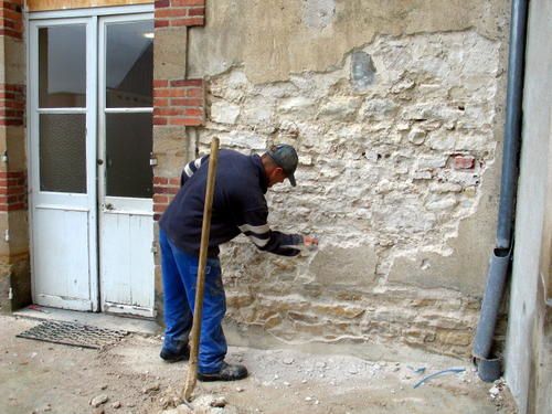 Pour enlever les traces noires sans le détériorer : Brossez le mur avec une brosse, en chiendent, imprégnée d’une solution de sels de potassium (ou une solution de gros sel et de vinaigre d’alcool), Laissez agir 2 h, Rincez avec une brosse imprégnée d’eau.
