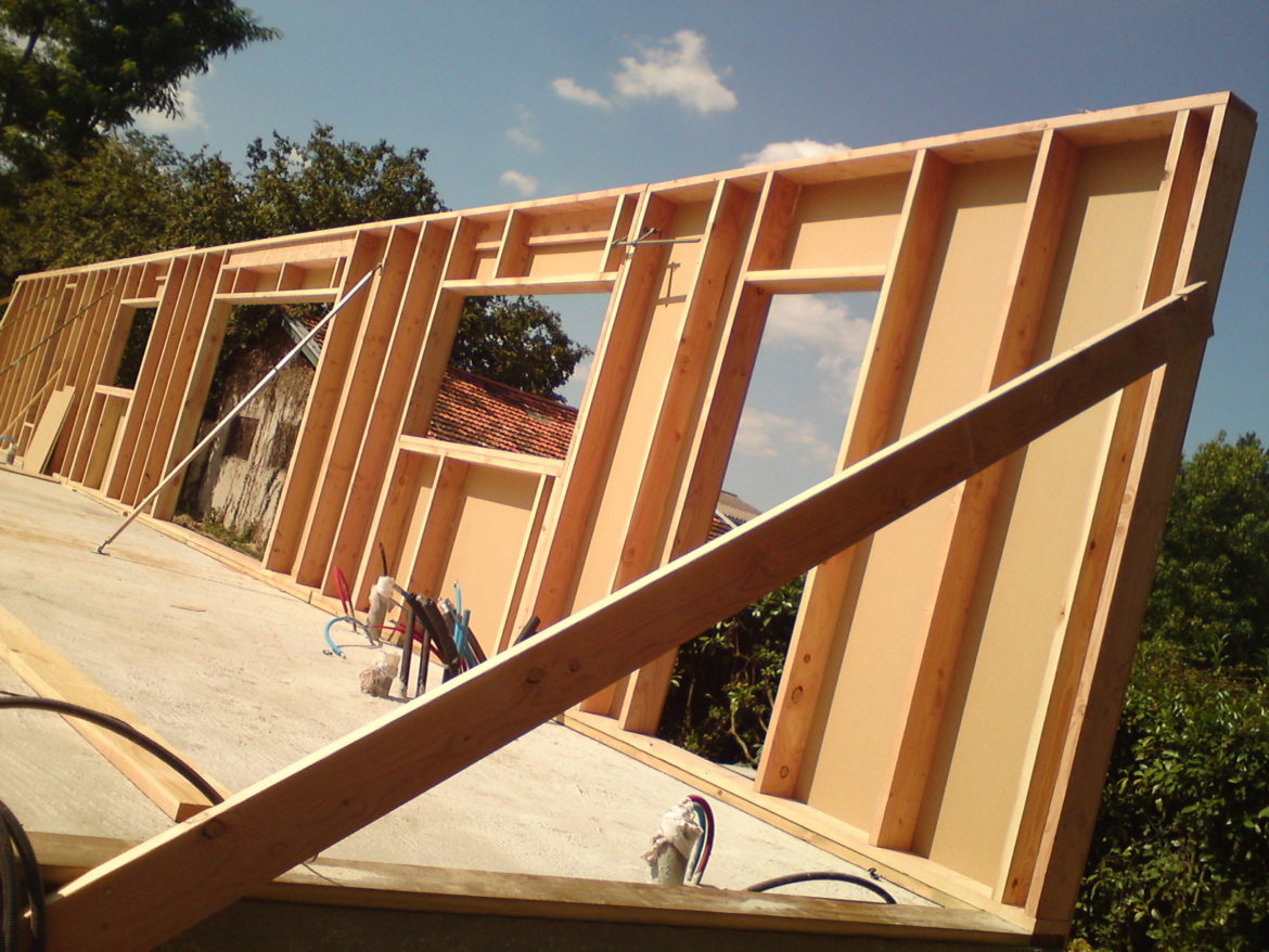 On découpe en premier les montants, lisses, traverses, entretoises et linteaux selon la liste de débit puis on assemble ensuite par clouage la lisse basse avec le premier montant et ainsi de suite jusqu’à la dernière pièce de bois.