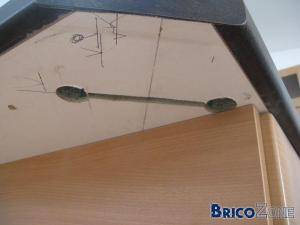Découper le joint au cutter (avant de prudemment faire levier avec un tournevis) est la meilleure manière de procéder. La dernière étape avant de retirer le plan de travail est de le dévisser. Pour ce faire, il faut entrer dans les placards et dévisser toutes les attaches.