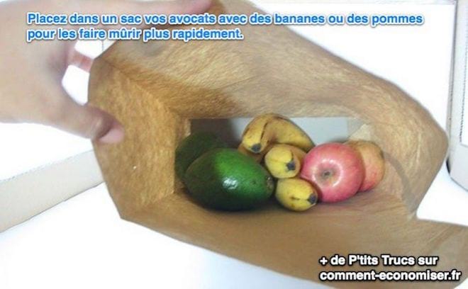 Pourquoi mes pommes ne mûrissent pas ? L’éthylène est un gaz qui accélère ce processus naturel. Pour faire mûrir des fruits pas assez mûrs, placez-les dans un lieu à température ambiante, sur un plat, dans la cuisine. Pour plus d’efficacité, vous pouvez recouvrir le plat d’une cloche. Ainsi, le gaz dégagé restera concentré sur les fruits.