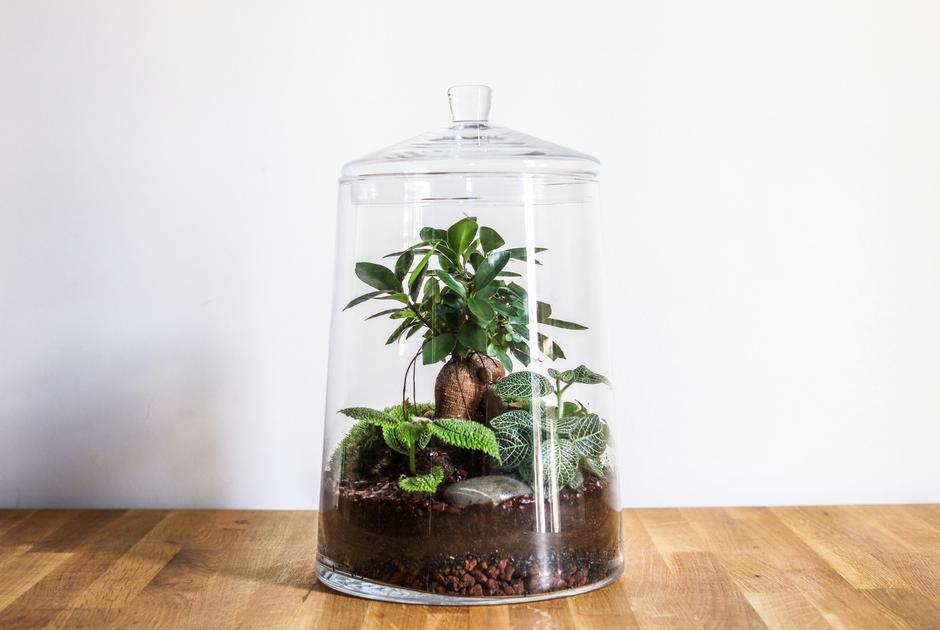 Choisir des petites plantes adaptées au milieu humide comme le ficus ginseng (Ficus microcarpa), les fittonias, l’asparagus ou encore le figuier nain (Ficus pumila). Prévoir un contenant transparent non percé, muni d’un couvercle. L’ouverture doit être assez grande pour y passer la main et y planter les végétaux.