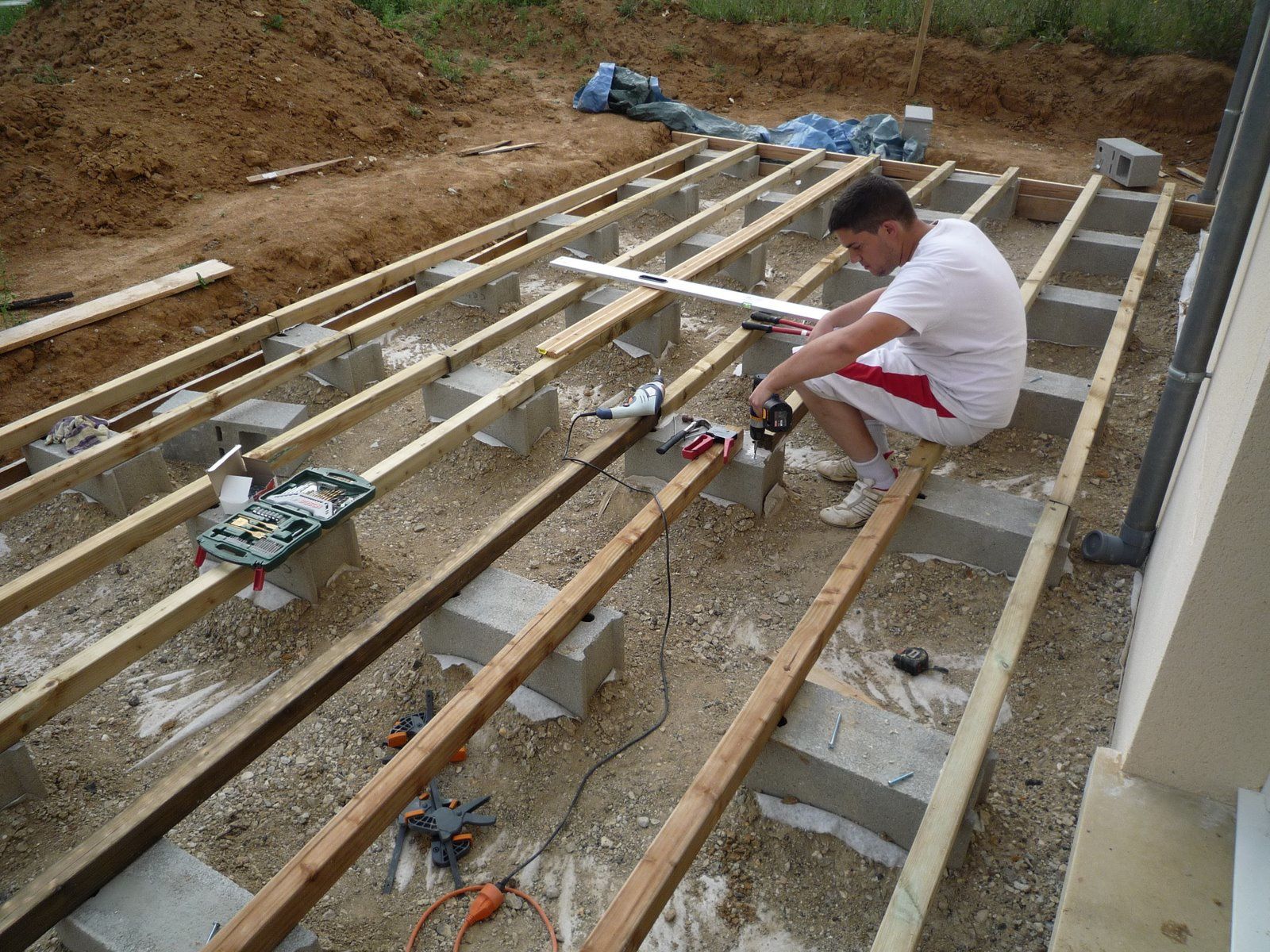 - Fixer les lambourdes sur ces parpaings avec des chevilles à frapper.