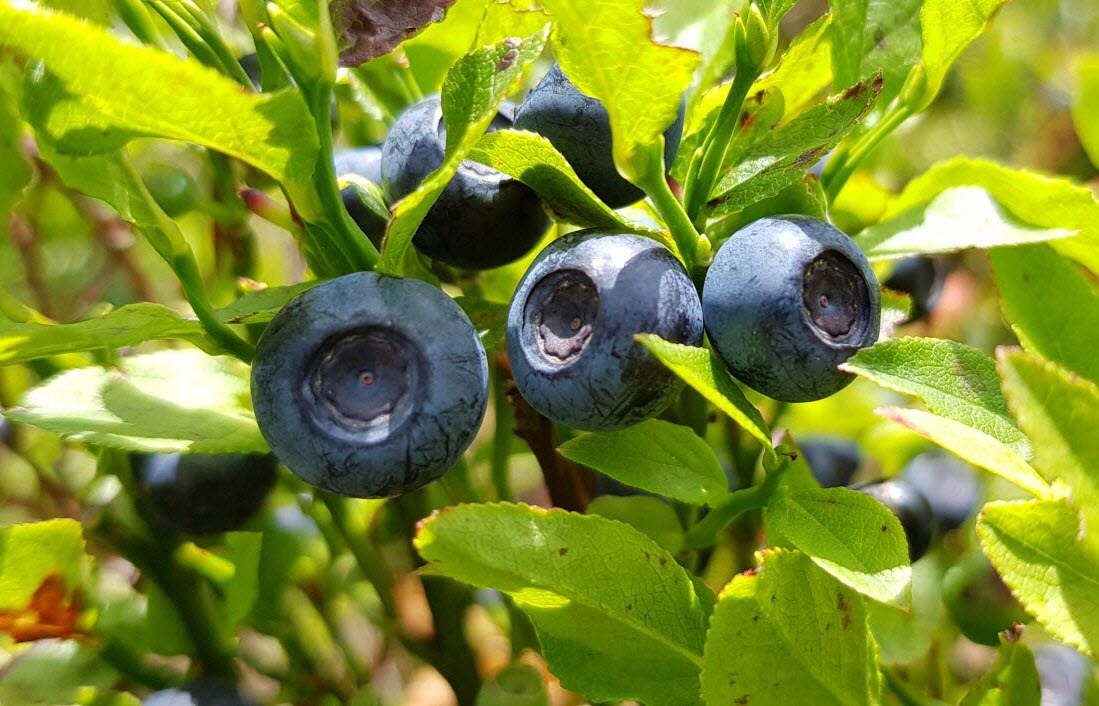 La myrtille se récolte sur des buissons qui peuvent atteindre 17m de hauteur entre le début juillet et la fin septembre suivant la variété