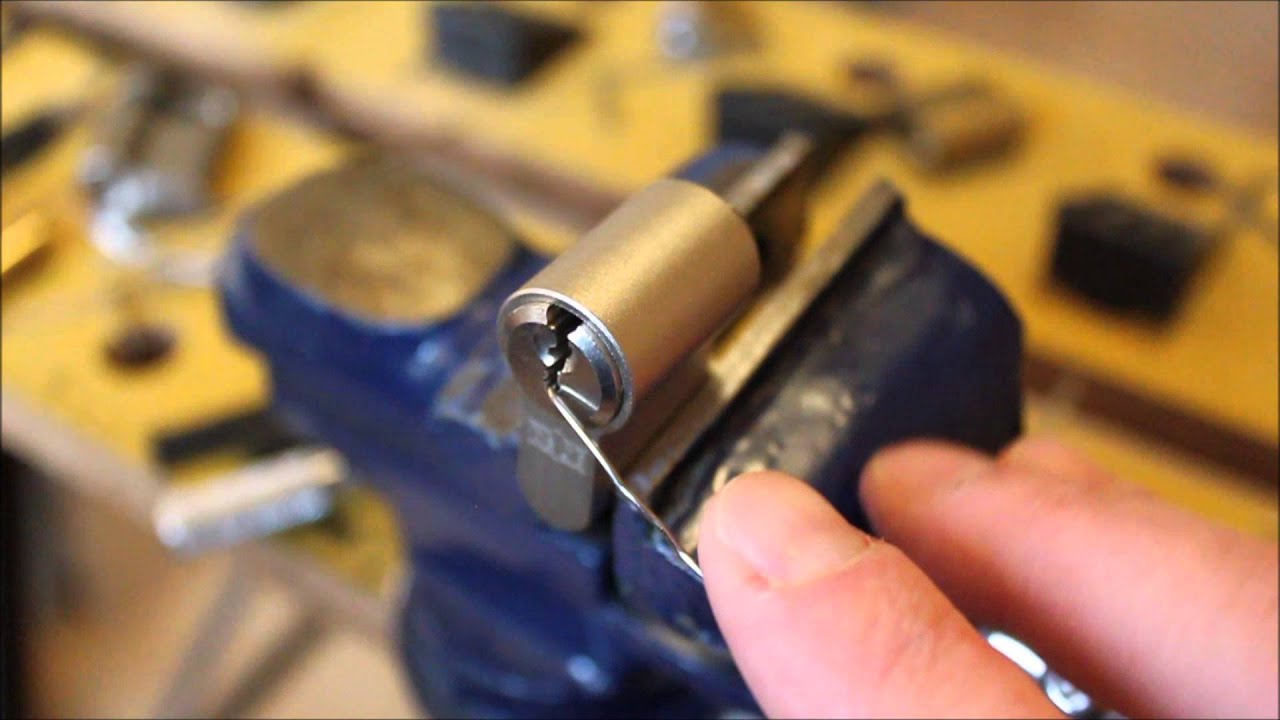 Pour les serrures plus simples, par exemple sur des boites ou des tiroirs, il n’y a même pas besoin de les crocheter. Il suffit d’insérer une pièce de métal plate jusqu’à l’arrière de la serrure, de la tourner dans le sens des aiguilles d’une montre tout en l’agitant de haut en bas.