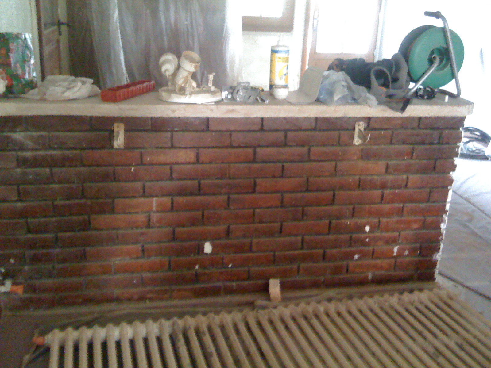 On peut également faire sauter la peinture ou le papier peint et laisser le plâtre apparent toujours pour le même résultat. L’idée n’étant pas d’être cracra, il faudra lessiver le muret si il le faut, mettre un vernis pour éviter la poussière.