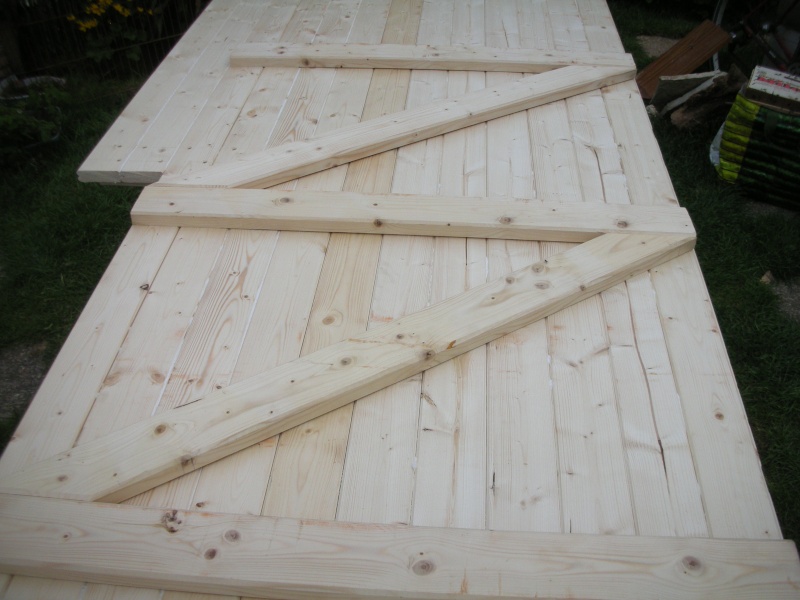 Positionner les bases du Z en haut et en bas de la porte. Utiliser, pour réaliser le Z, des barres en bois exotique de section 8 x 3 cm. À l’aide d’une équerre, positionner les bases (traverses) du Z à 40 cm des bords haut et bas de la porte.