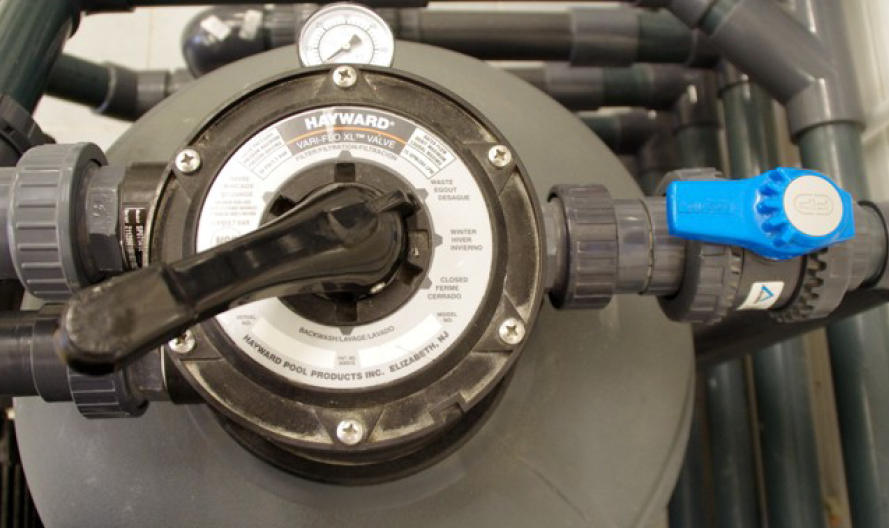 Quelle position des vannes pour filtration piscine ? – mettre la vanne en position « lavage » (« backwash ») – ouvrir la vanne sur le tuyau de vidange, s’il en existe une et laisser les autres ouvertes l’eau devient claire, arrêter la pompe – mettre la vanne est position « filtre-égout » (« rinse »)