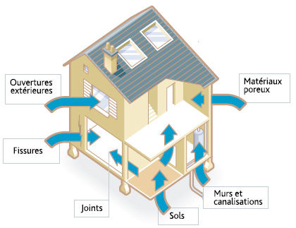 Une bonne ventilation naturelle ou mécanisée du bâtiment permettra d’évacuer le radon résiduel. Une aération régulière des locaux par l’ouverture raisonnée des ouvrants permet encore d’améliorer l’élimination du radon mais aussi des autres polluants de l’air intérieur.