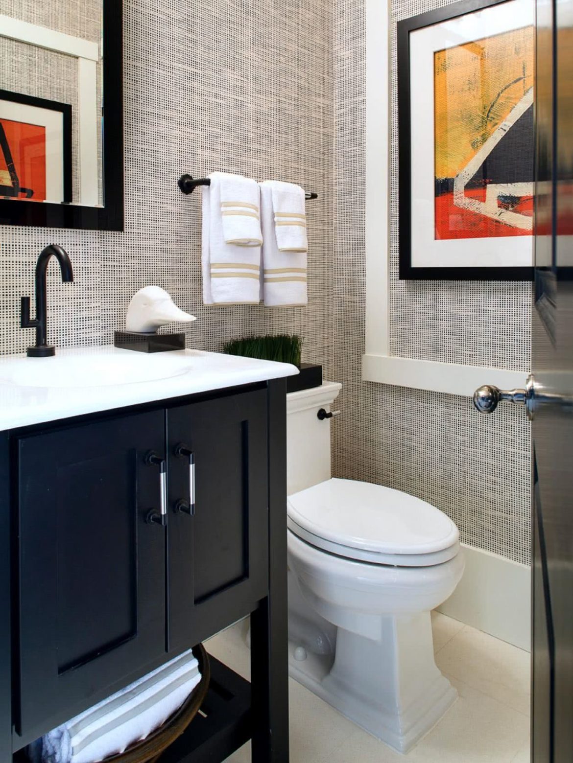 Ci-dessous nous vous montrons quelques photos où vous pourrez apprécier plusieurs styles de salles de bain très originaux qui utilisent le papier peint comme élément décoratif principal.