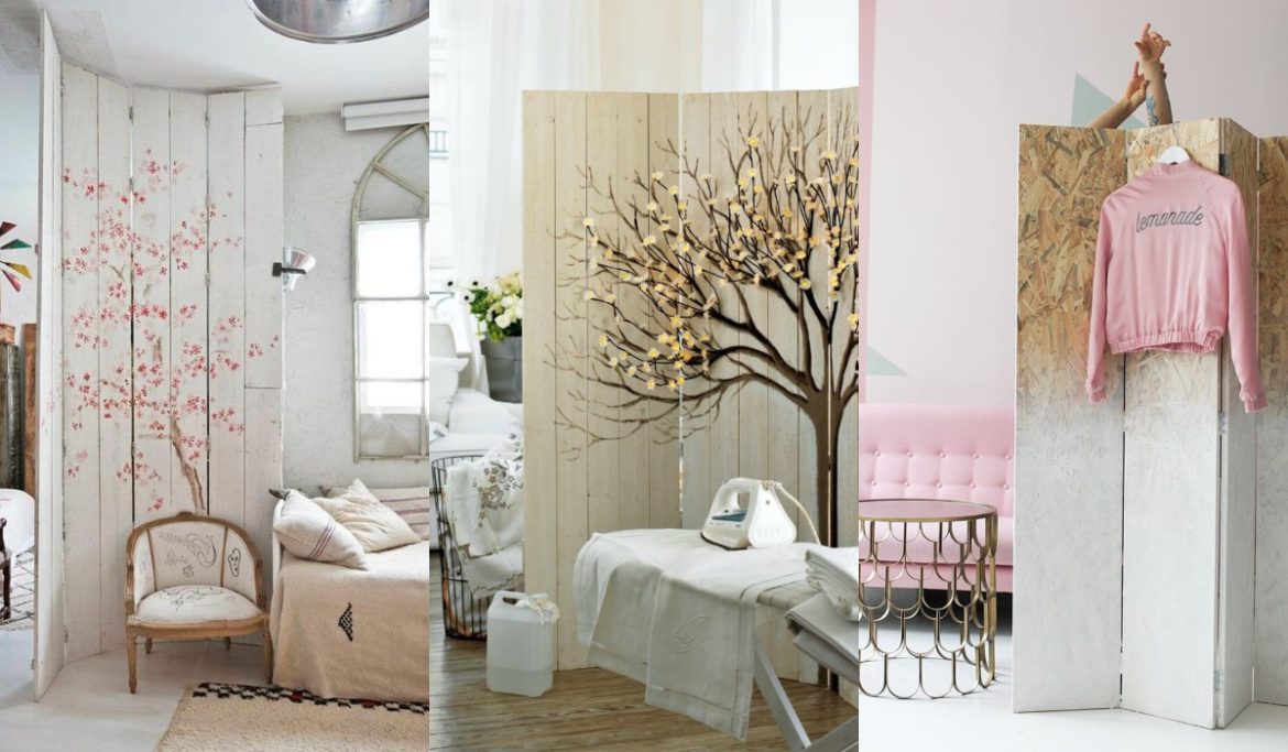 Et cette idée avec un point artistique. Un paravent simple décoré d’un design romantique.