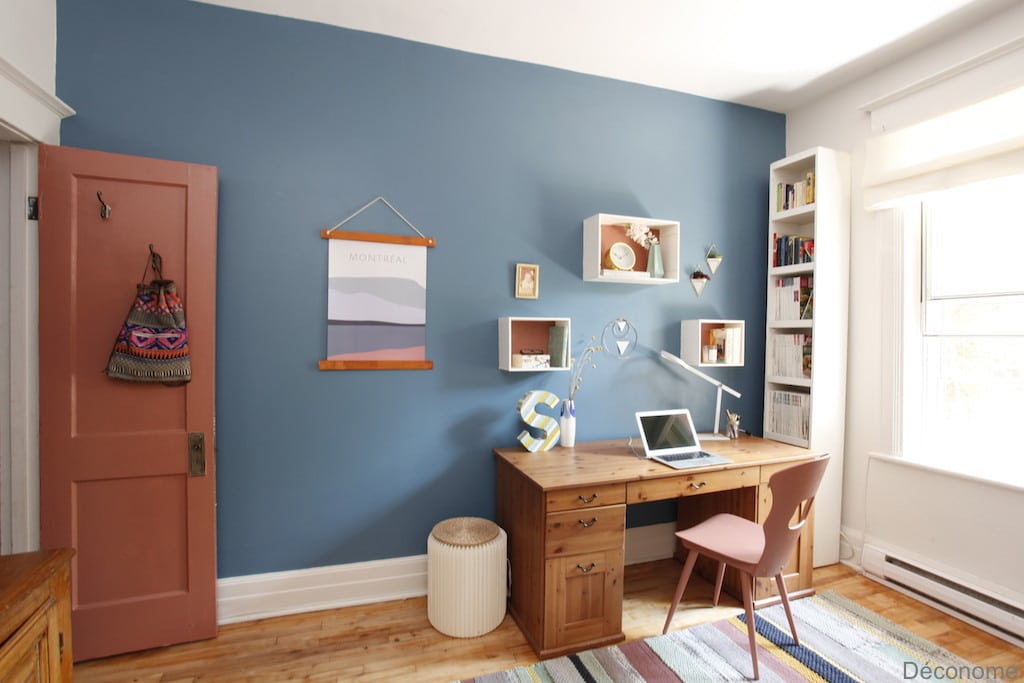 Du blanc au beige comme couleur de peinture dominante pour un bureau. Il est habituel de choisir une teinte claire comme couleur dominante sur le mur principal du bureau. Par couleur dominante, on entend celle qui sera la plus présente dans la pièce et qui ne viendra pas éteindre les autres couleurs.