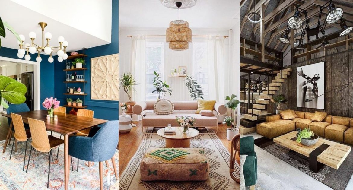Également des projets faits maison que vous pouvez réaliser vous-même, comme des lampes au crochet ou des abat-jours en macramé faits à la main, puisque la technique du nœud est un incontournable dans les environnements Boho et on la retrouve représentée dans une multitude d’objets.