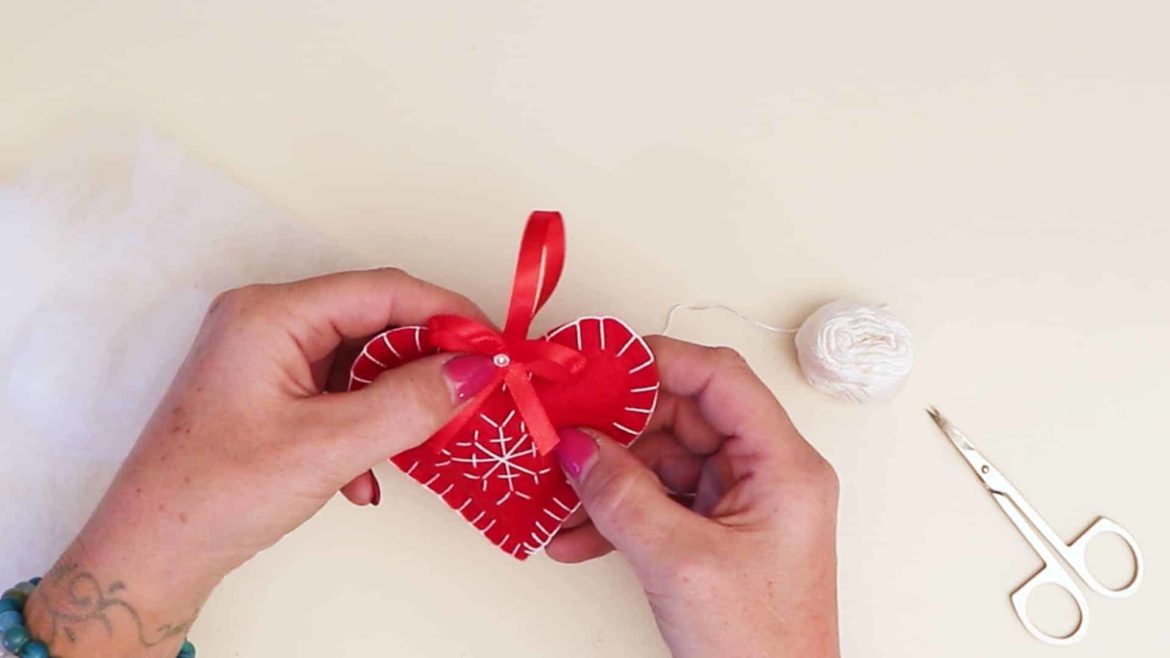 Dernièrement, je cherchais des choses très simples que je pourrais faire en cette saison des vacances et qui vont m'aider à apprendre à coudre à mes enfants. Ils ne sont pas tout à fait prêts à essayer la machine, mais ils sont vraiment assez vieux (et suffisamment patients) pour essayer un peu de couture à la main. C’est ainsi que j’ai eu l’idée de cette idée d’ornement de cœur en feutre brodée de flocon de neige que je ne pouvais pas m'empêcher de partager avec tout le monde aussi parce que cela s’avérait si mignon.
