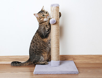 Comment utiliser un grattoir pour chat ? En en agitant un vers le haut du griffoir, vous inciterez votre félin à vouloir poser ses pattes dessus et à essayer de l’escalader pour attraper le plumeau. Alternativement, vous pouvez également placer le jouet préféré de votre minou au sommet du griffoir.
