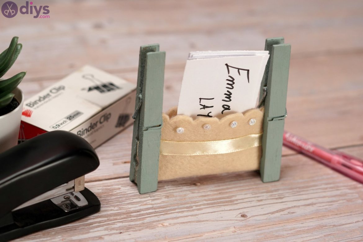 Nous aimerions avoir de vos nouvelles afin que vous puissiez nous dire ce que vous pensez de ce projet. En outre, c’est un porte-cartes de bricolage que vous pouvez personnaliser comme vous le souhaitez – vous pouvez changer la couleur du feutre, la nuance du ruban de soie et la peinture que vous utilisez pour les pinces à linge. Vous pouvez même utiliser différentes pièces de décoration si vous le souhaitez. En parlant de cela, nous aimerions voir comment vos créations se sont déroulées, alors partagez quelques photos avec nous sur les réseaux sociaux!