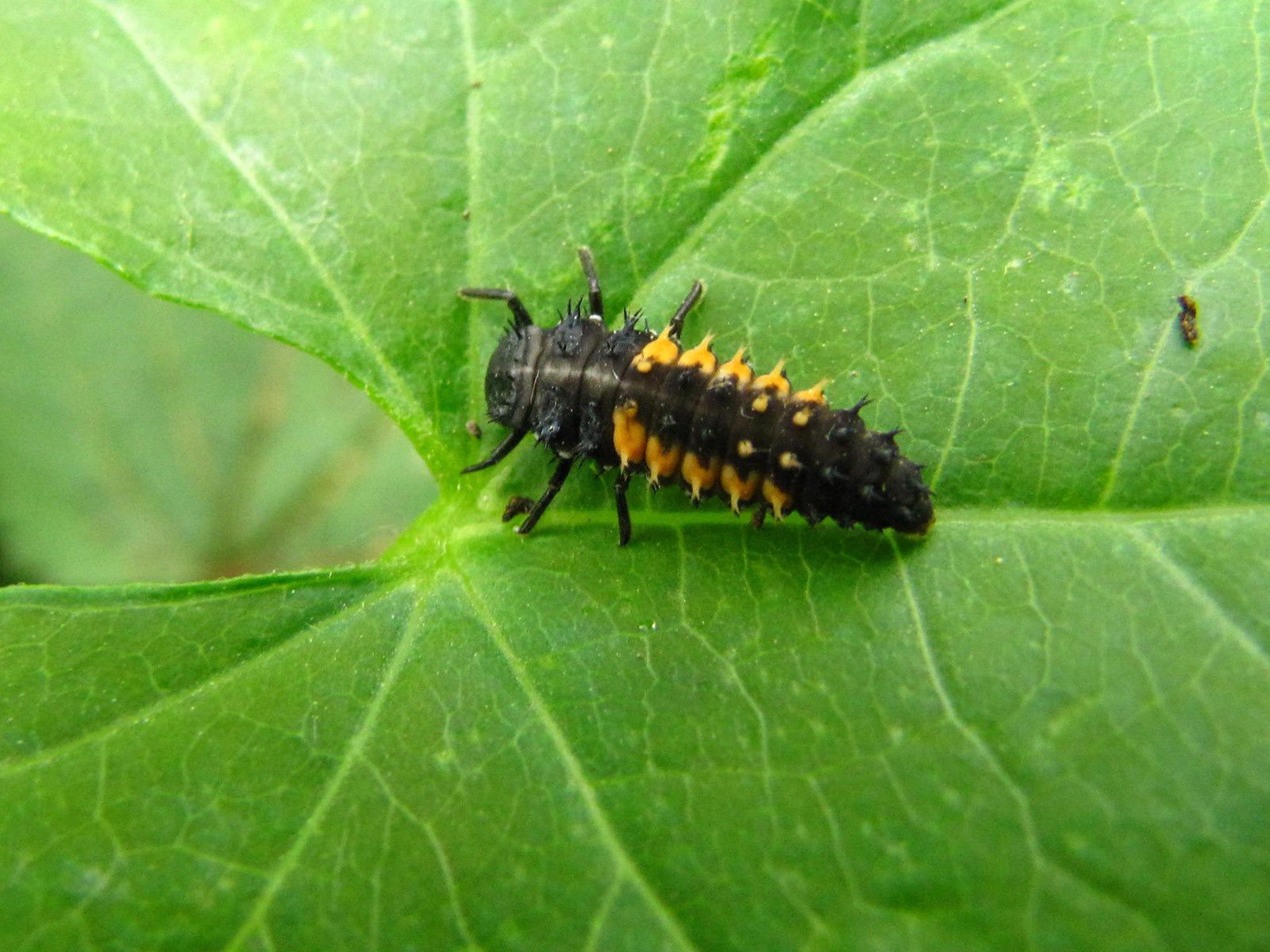 Comment s’appelle le bébé de la coccinelle ? On ne peut pas vraiment parler de chasse : la larve de coccinelle se promène sur les feuilles et le long des tiges et elle dévore tout puceron se trouvant sur son passage La larve grossit et passe par 4 stades larvaires successifs, en muant à la fin de chacun des stades qui durent environ 4 à 5 jours