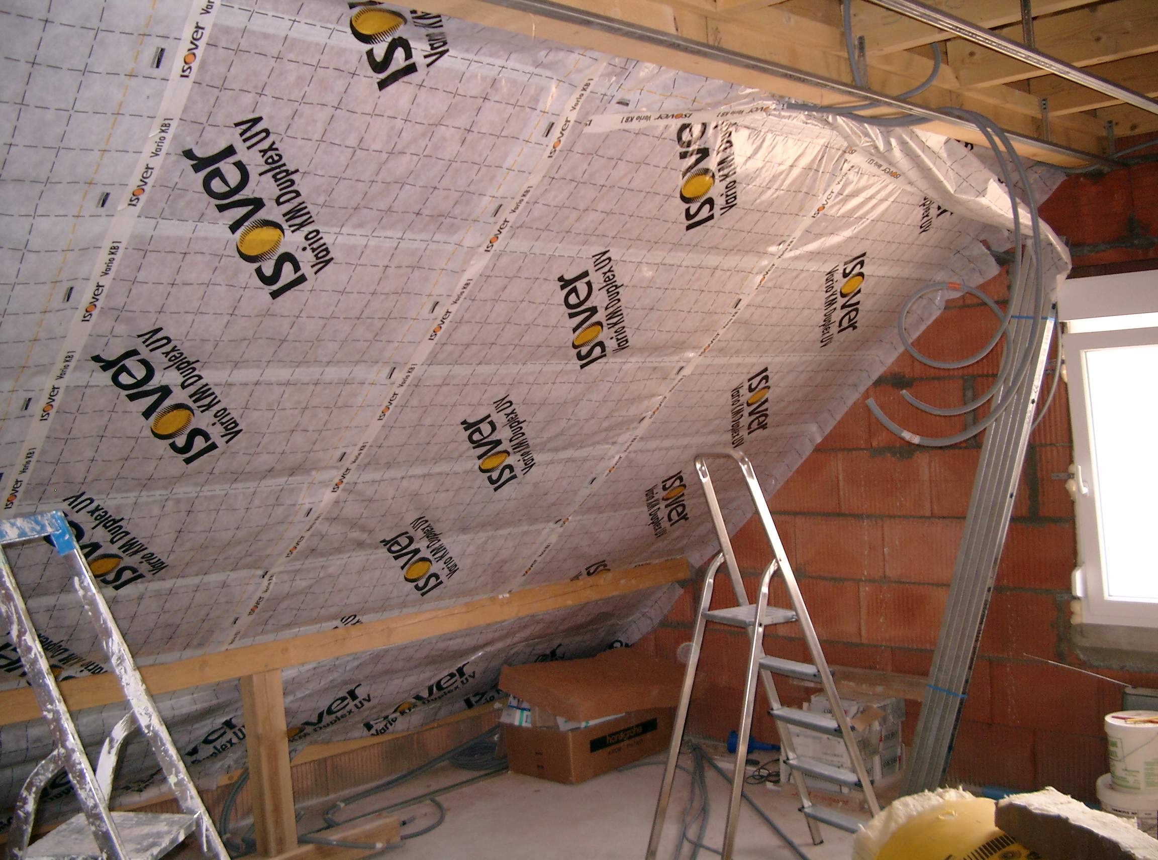 Un pare–vapeur en laine de verre doit toujours être posé du côté chaud de la surface isolante. Lorsque vous isolez une toiture en pente avec de la laine de verre, vous devez donc poser le pare–vapeur en dernier lieu.