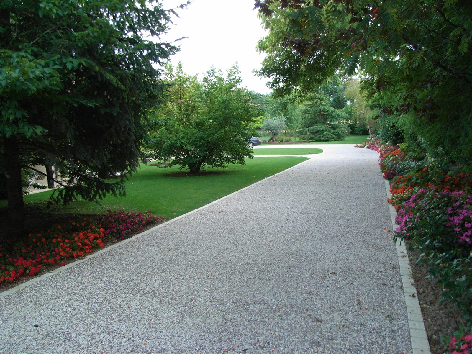 La pose de gravier décoratif, allié des travaux de parking « pas chers »: De toutes les couleurs et de toutes les tailles, le gravier reste la solution la moins onéreuse pour constituer une zone de stationnement.