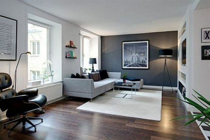Pour ce faire, c’est simple : il suffit de peindre le mur le plus grand de la pièce dans un coloris clair, et les autres murs dans une teinte plus foncée. Cette astuce toute bête permet en effet de changer totalement la perspective de la pièce et de créer de la profondeur.