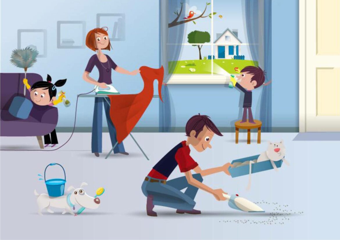 La méthode générale : Le ménage s’effectue pièce par pièce en faisant suivre vos produits et votre matériel (sauf serpillère et aspirateur). Le nettoyage des sols se fait en dernier et dans toutes les pièces à la fois. Il est préférable de terminer une pièce (sans faire le sol) avant d’en commencer une autre.