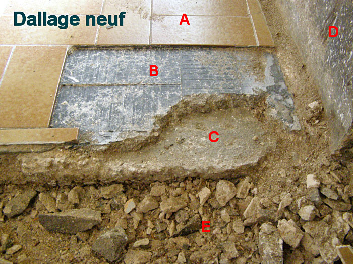 Si la surface n’est pas totalement plane, il faudra recourir à un ragréage du sol (2) avec un enduit. Sur un sol meuble, de type terre battue, l’idéal est de mettre en œuvre successivement une couche de sable et/ou de graviers puis un film mince d’étanchéité avant de poser les panneaux d’isolants.