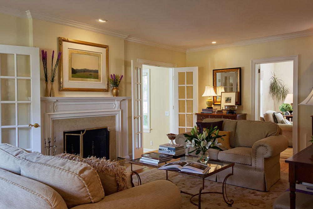 Salon. S’il n’y a pas beaucoup de lumière dans votre salon, il est préférable d’utiliser une peinture de couleur chaude et pâle comme le jaune frais ou le jaune chrome. Vous pouvez aussi essayer de peindre l’intérieur de la fenêtre d’un blanc pur pour refléter la lumière autant que possible dans la pièce.