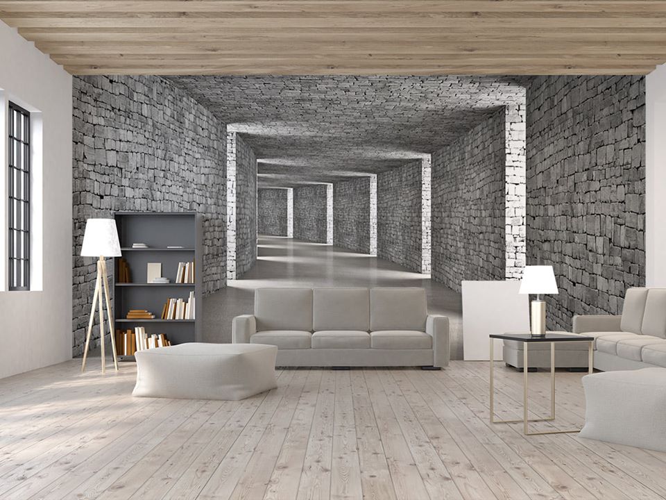 Dans le salon ou la salle à manger, préférez un papier peint intissé. Pour éviter la sensation d’étouffement, ne couvrez qu’un pan de mur et habillez le reste avec un papier plus neutre. Au salon un motif en trompe-l’œil ou encore un papier peint panoramique.