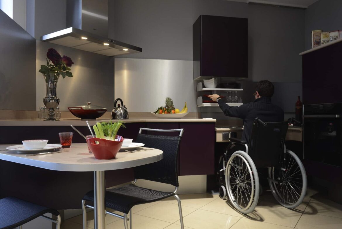Une personne en fauteuil roulant doit pouvoir évoluer dans toutes les circulations intérieures du logement (90 cm de largeur au minimum) pour accéder et sortir d’une pièce de vie.