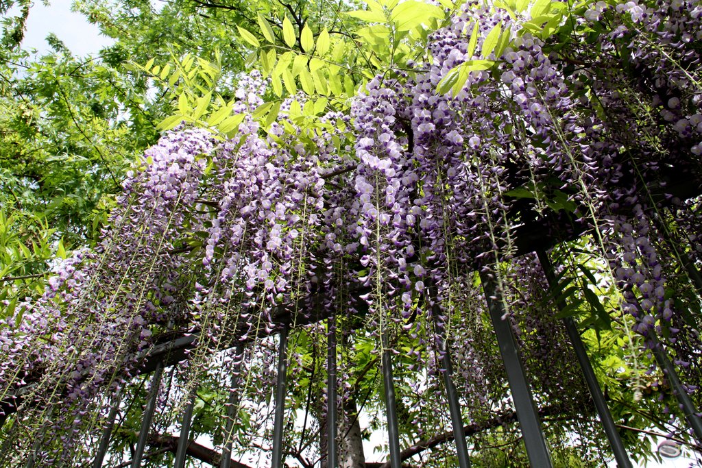 On peut les associer avec d’autres grimpantes, d’autres lianes comme une clématite, un rosier grimpant, une bignone… On peut associer la glycine avec un arbre. Attention toute fois, la glycine avec le temps pourrait étouffer son support.