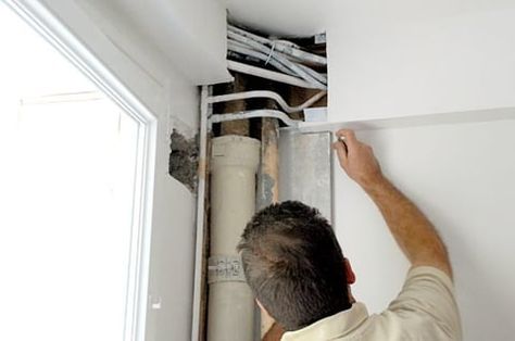 - Appliquer le mastic colle au dos du profilé et plaquer la goulotte au mur pour les goulottes à coller.