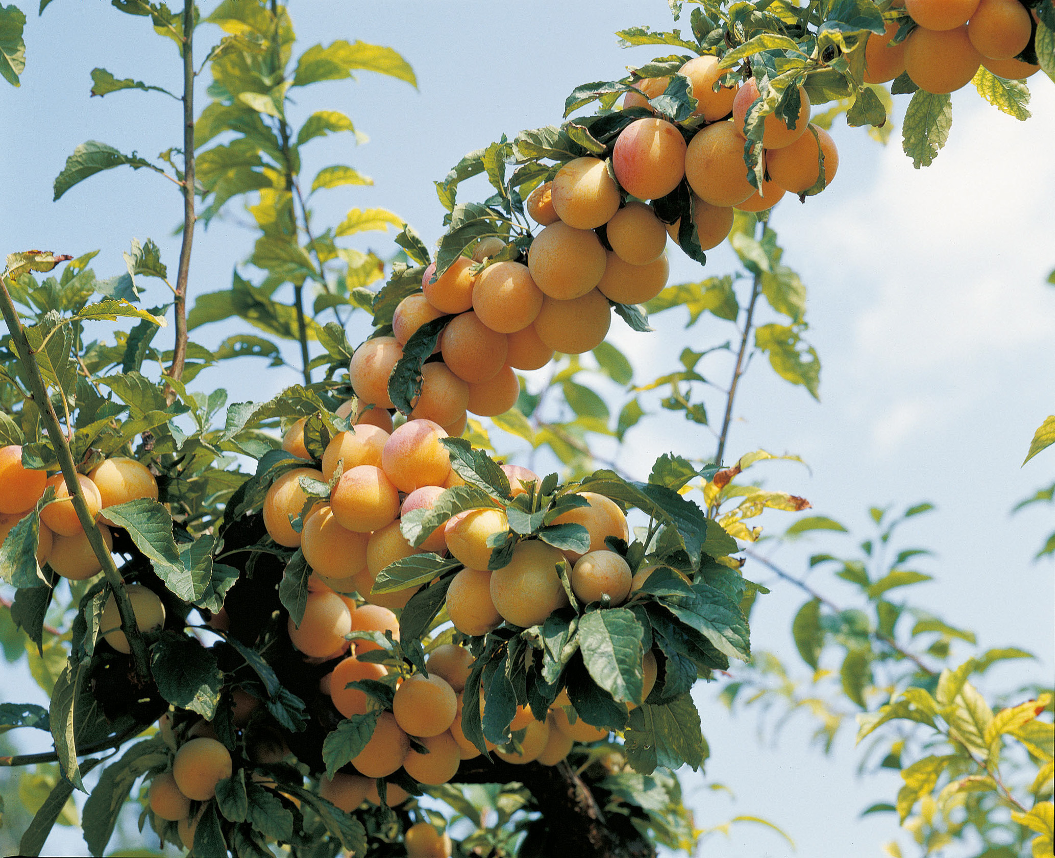 Parmi les mirabelliers, la ‘Mirabelle de Nancy’ aux petits fruits jaune d’or ambré teinté de rouge, est sans doute la plus délicieuse (juteuse, sucrée, peu acide), mais il y a également la ‘Mirabelle de Metz’, très productive, aux fruits plus petits, la ‘Mirabelle de Flotow’, la plus précoce