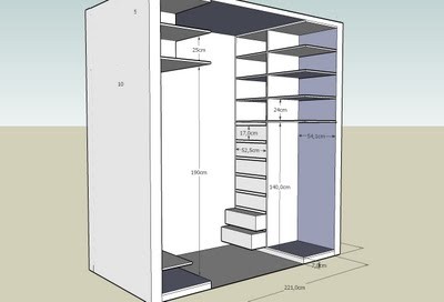 • Si le dressing comporte des portes, il convient de porter la profondeur du dressing à 60 cm.