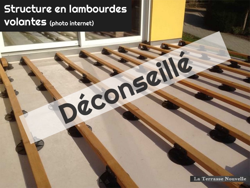 L’espacement entre les lambourdes doit être de 50cm à la pose. Cet entraxe peut être réduit à moins de 40cm pour les lambourdes plus fines et pour une terrasse plus rigide. ✅