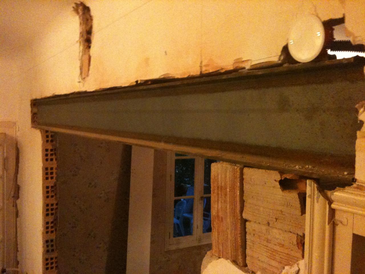On commence par ouvrir le mur porteur juste en-dessous du linteau, puis on casse le mur progressivement, en s’assurant toujours que le linteau reste bien en place. A noter que l’ouverture d’un mur porteur s’effectue toujours du haut vers le bas.