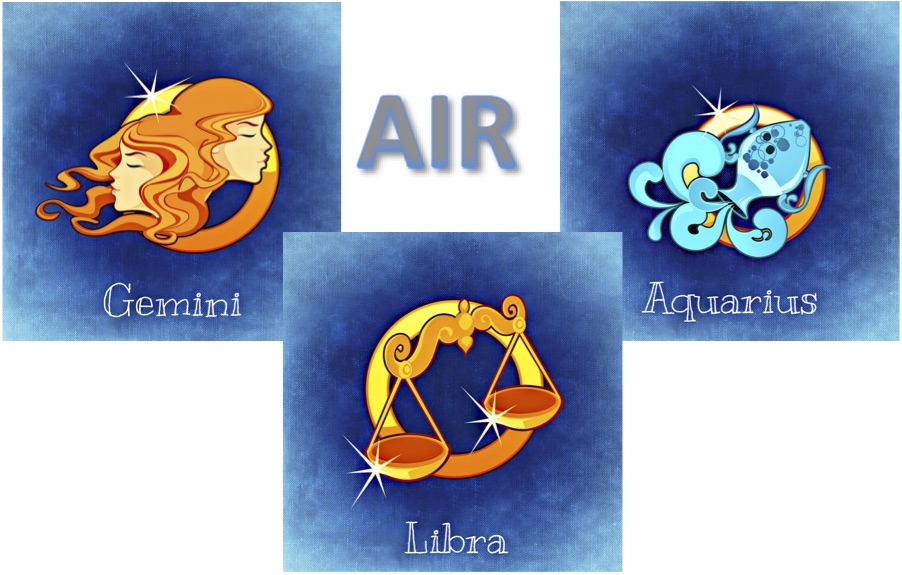 - Signe d’ air : Gémeaux, Balance, Verseau.