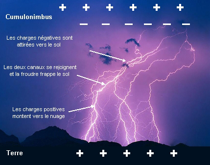 Cette décharge électrique peut se former à l’intérieur d’un nuage d’orage – appelé cumulonimbus – entre deux nuages ou entre un nuage et le sol, provoquant ainsi un éclair et une détonation. … Une personne debout dans une zone dégagée (stade, champ, pré) est une cible privilégiée pour la foudre.